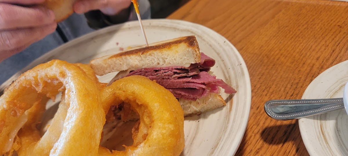 I had a delicious chicken apple walnut wrap at my first time here. The soups, sandwiches, onion rings, and rice pudding are fantastic. I love the bowl of pickles they bring you!